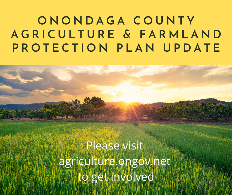 Please help us get the word out, and post a link to our County Agriculture & Farmland Protection Plan website on your municipal website. Share a link to agriculture.onondaga.gov, or post this graphic on your website.