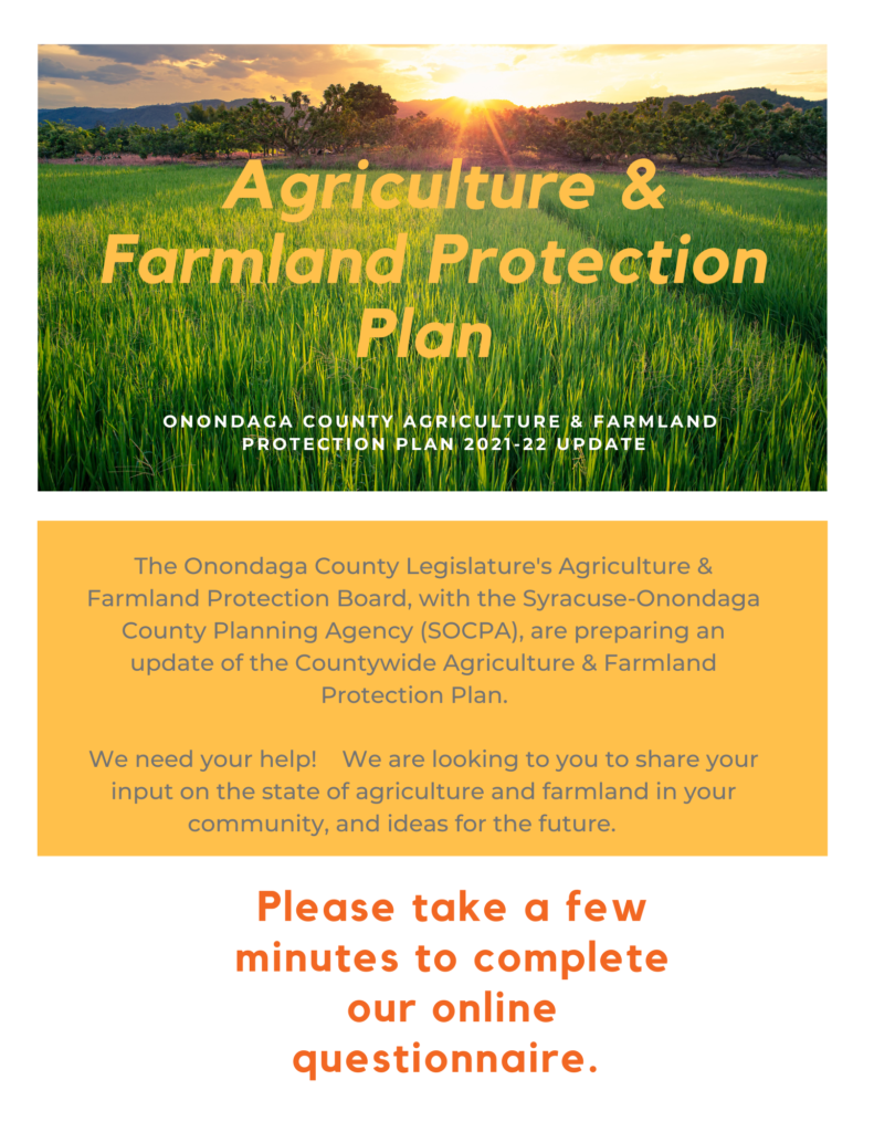 All Town and Village representatives in Onondaga County are encouraged to answer a brief questionnaire on agriculture in their municipalities. Click here for link and take the survey today!
